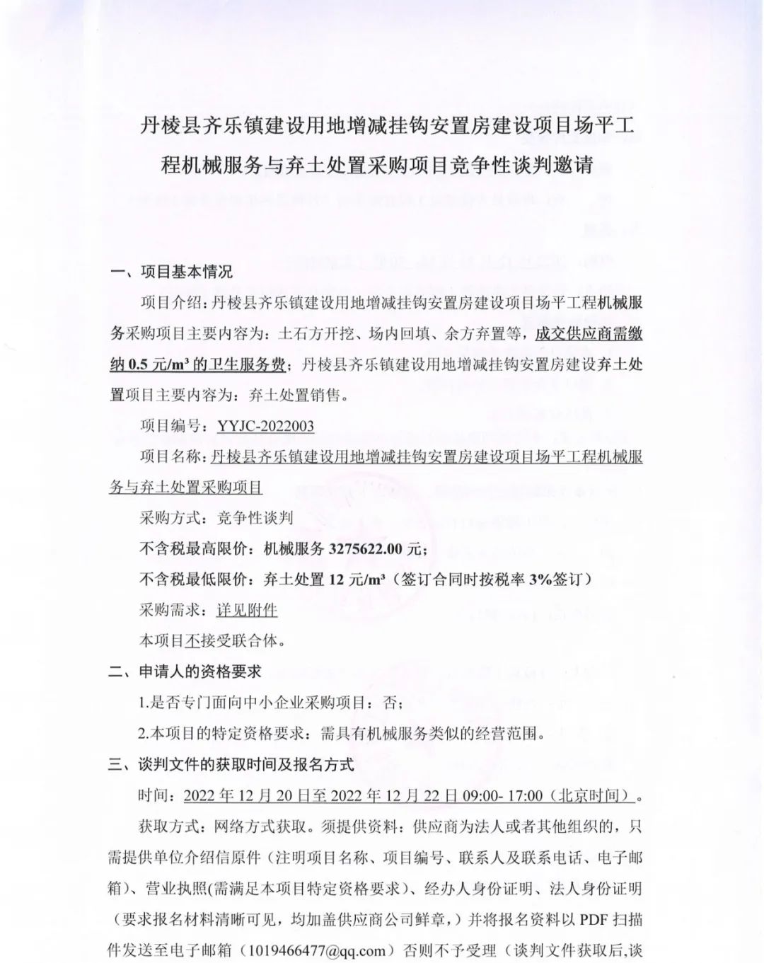 丹棱縣齊樂鎮(zhèn)建設用地增減掛鉤安置房建設項目場平工程機械服務與棄土處置采購項目競爭性談判邀請