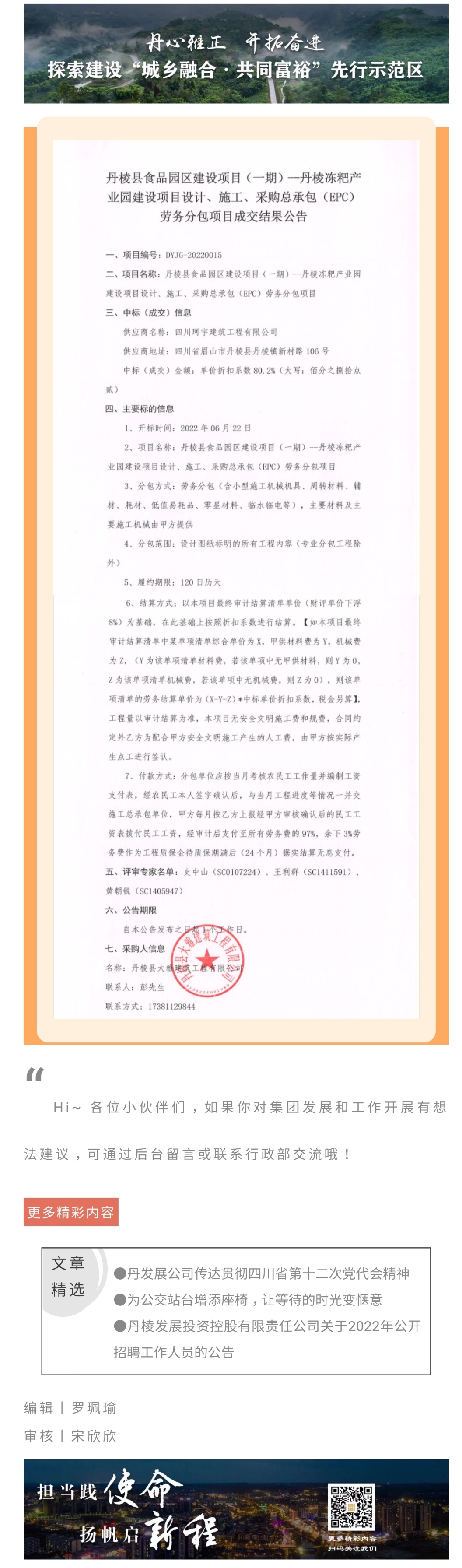丹棱縣食品園區(qū)建設項目(一期)--丹棱凍粑產(chǎn)業(yè)園建設項目設計、施工、采購總承包(EPC)勞務分包項目成交結果公告