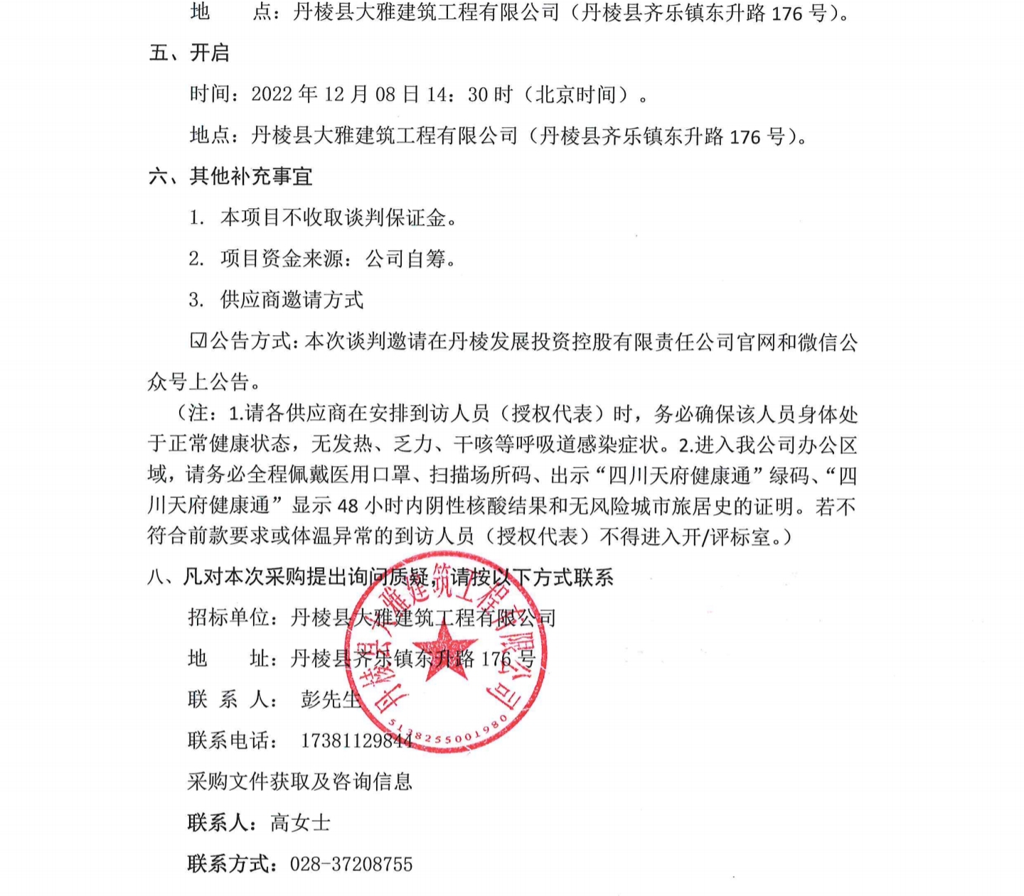 丹棱縣食品園區(qū)建設(shè)項(xiàng)目 (一期)--丹樓凍把產(chǎn)業(yè)園建設(shè)項(xiàng)目設(shè)計(jì)、施工、采購(gòu)總承包 (EPC) 電梯采購(gòu)及安裝采購(gòu)項(xiàng)目 (第二次)談判邀請(qǐng)公告