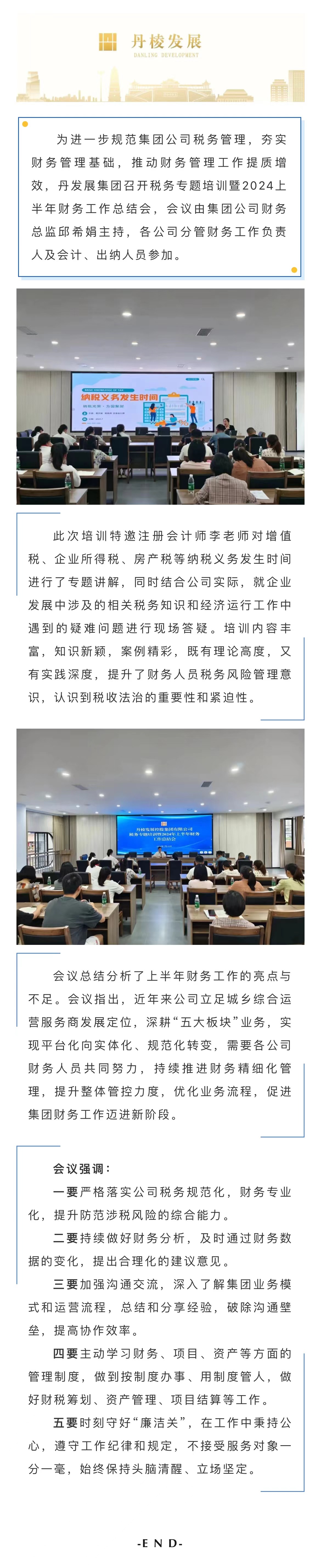 審慎嚴(yán)謹(jǐn) 聚力同行——丹發(fā)展集團(tuán)公司召開稅務(wù)專題培訓(xùn)暨2024上半年財務(wù)工作總結(jié)會