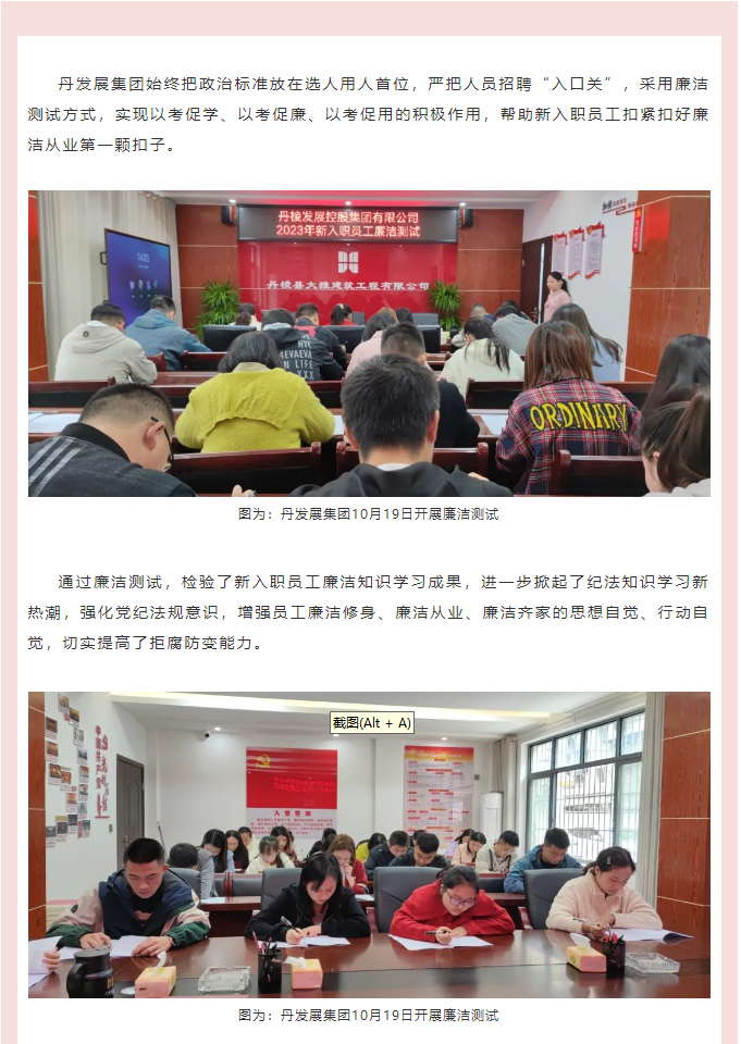 以考促學、以學促廉、以廉促行——丹發(fā)展集團開展2023年新入職員工廉潔測試