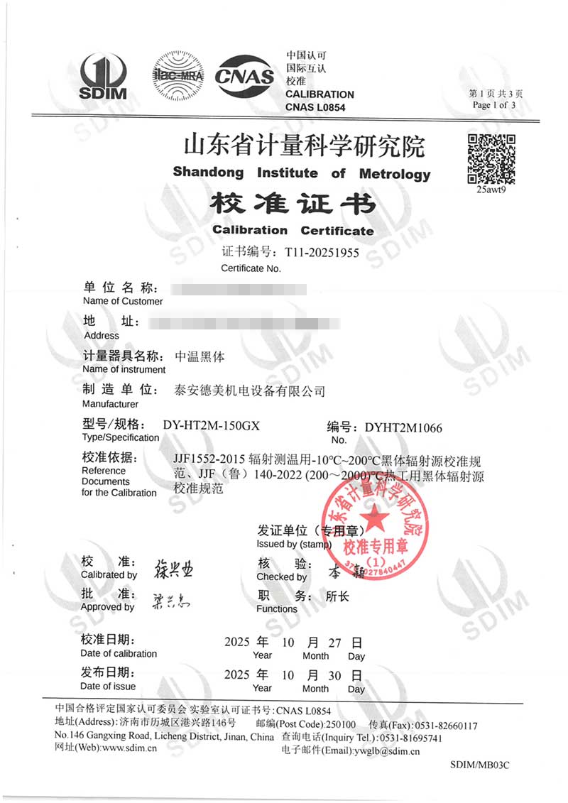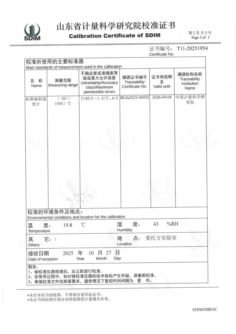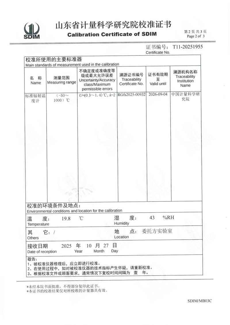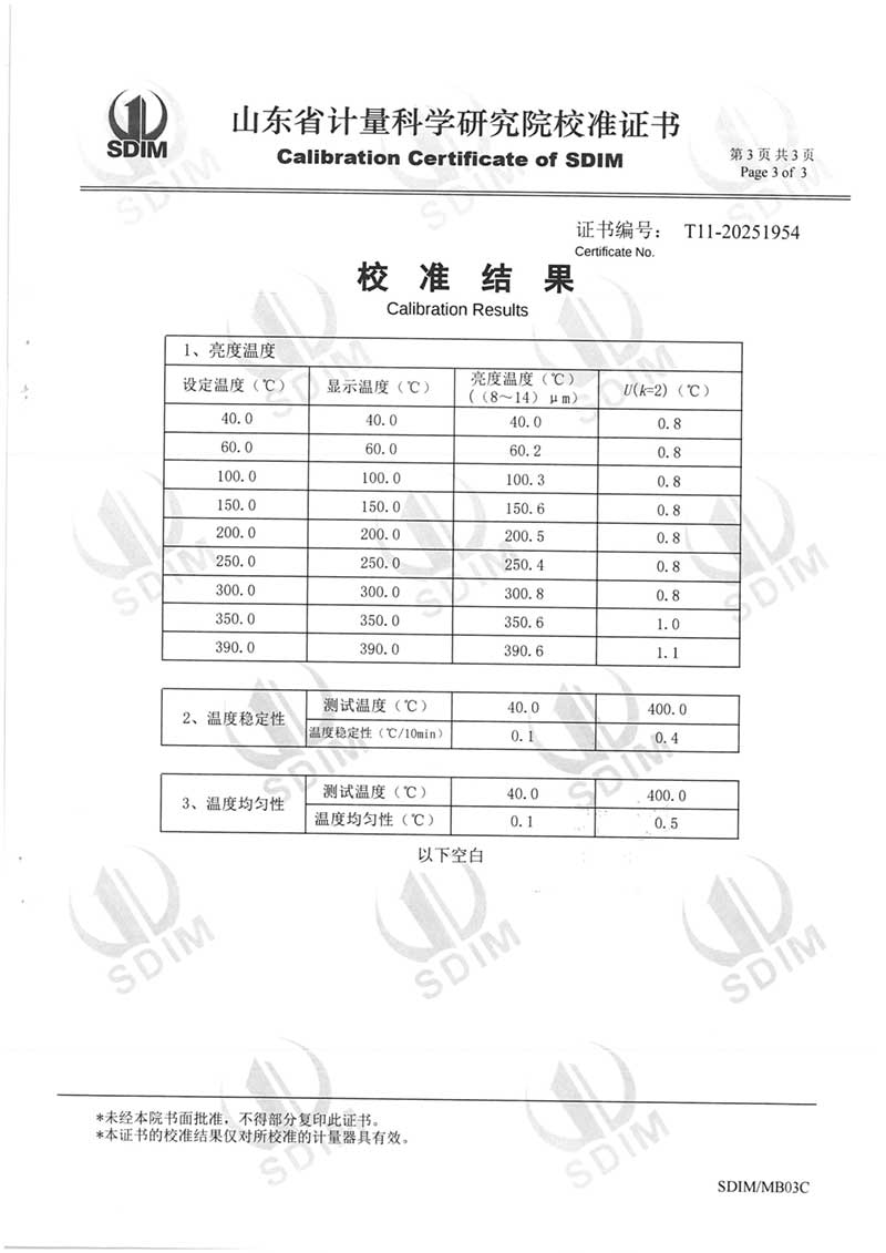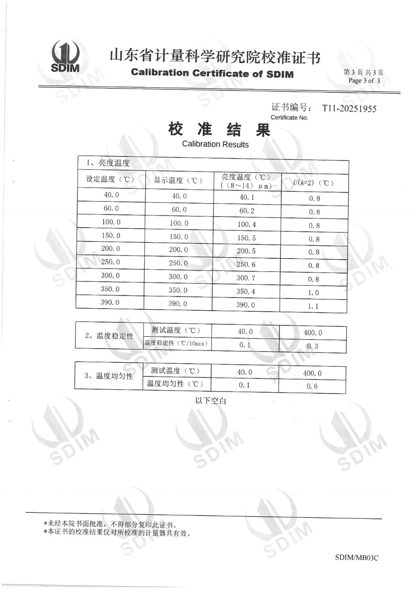 中溫黑體(室溫+5~400℃)校準證書 2025-11-5 本文被閱讀 122 次