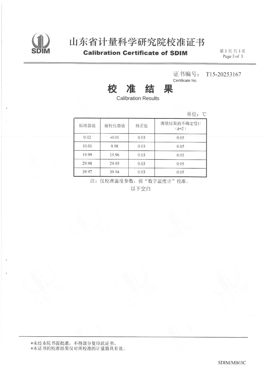| 上一條:高精度數(shù)字溫度計(jì)(-20-100℃)校準(zhǔn)證書 | 下一條:零點(diǎn)恒溫器校準(zhǔn)證書 |