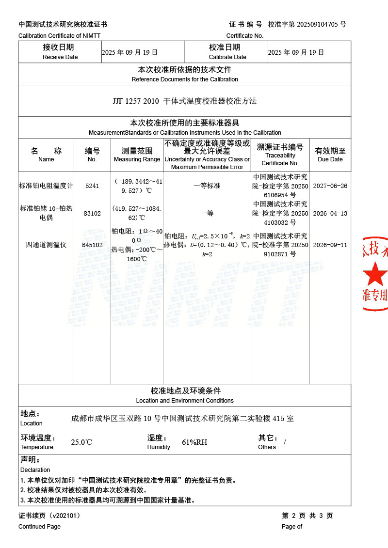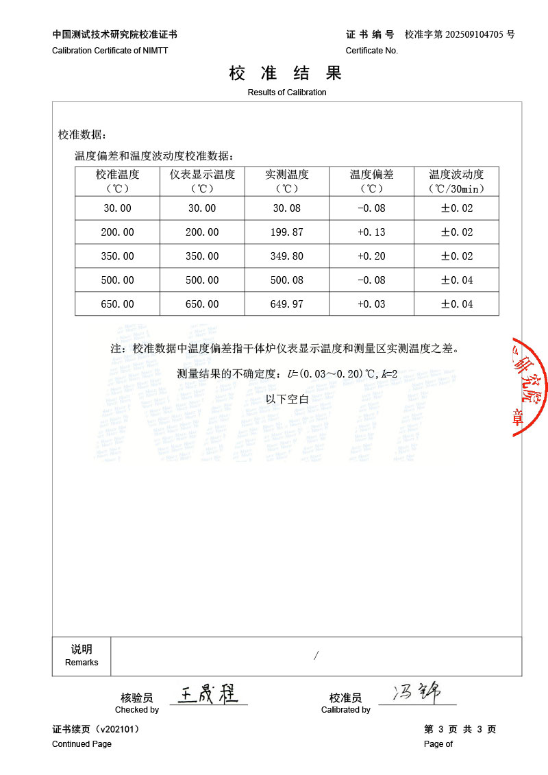 | 上一條:高溫干體爐(300-1200℃)校準(zhǔn)證書 | 下一條:冷鏡式露點(diǎn)儀校準(zhǔn)證書 |