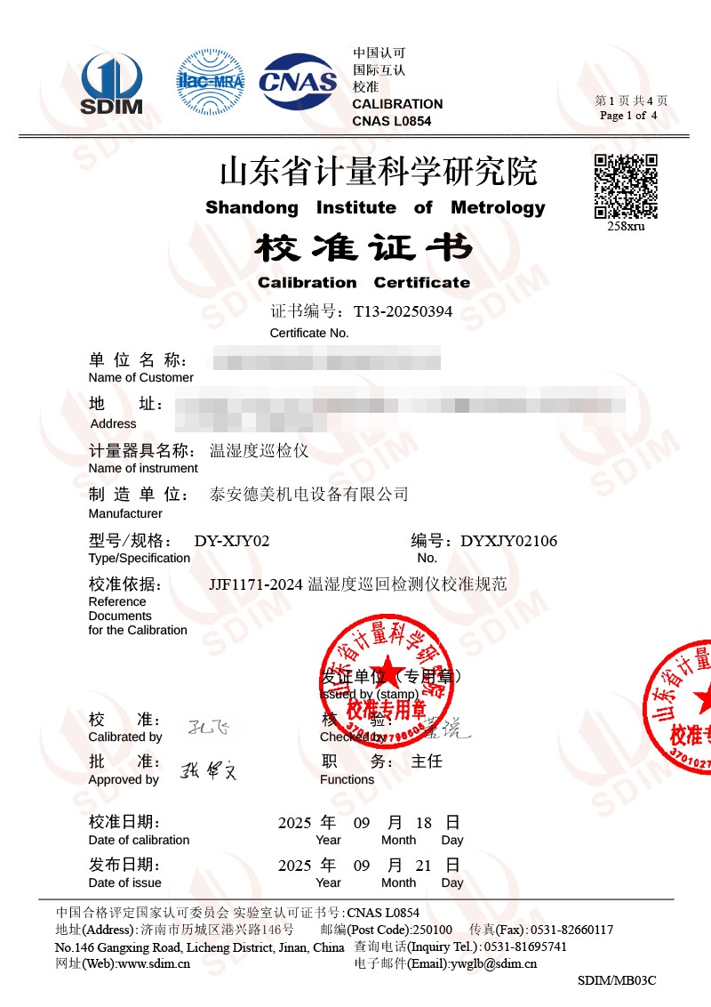 溫濕度巡檢儀校準證書 2025-9-23 本文被閱讀 1056 次